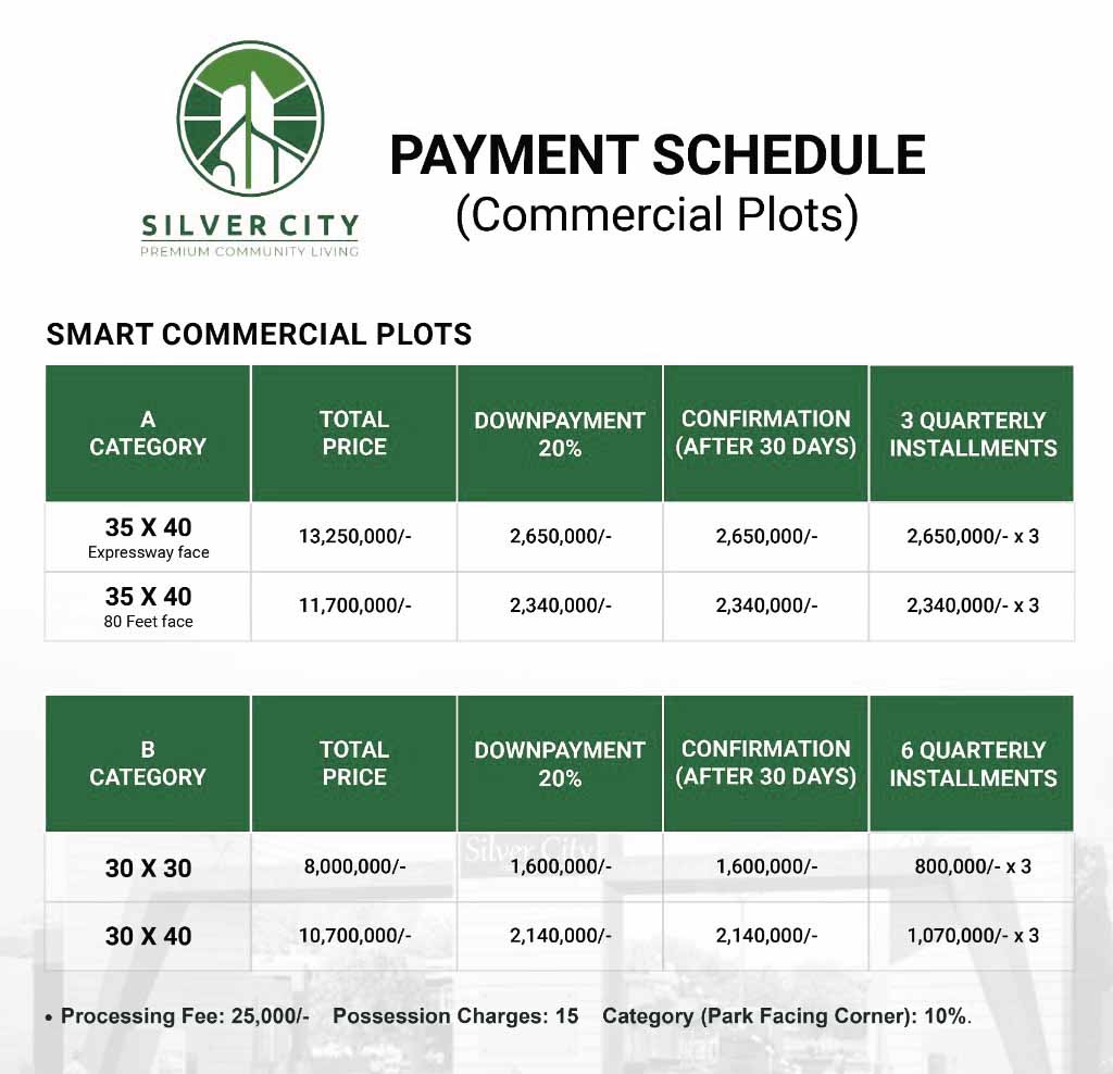 Commercial plots of various sizes are available at Silver City Islamabad: